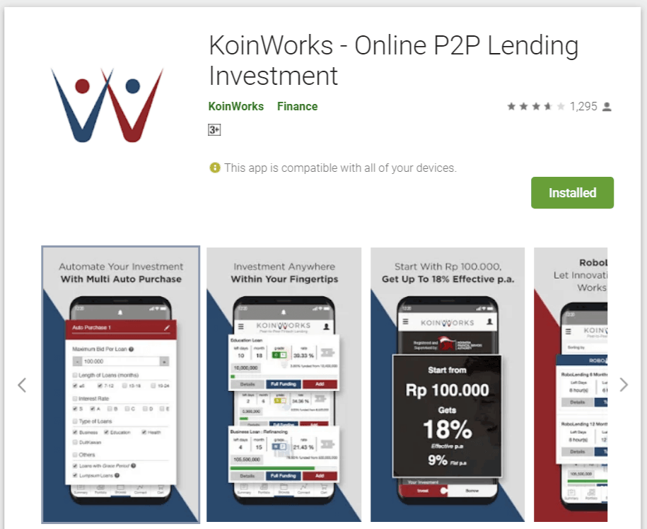 Aplikasi Koinworks dapat diunduh di Google Playstore. Ada banyak fitur dalam aplikasi tersebut dapat Anda gunakan.
